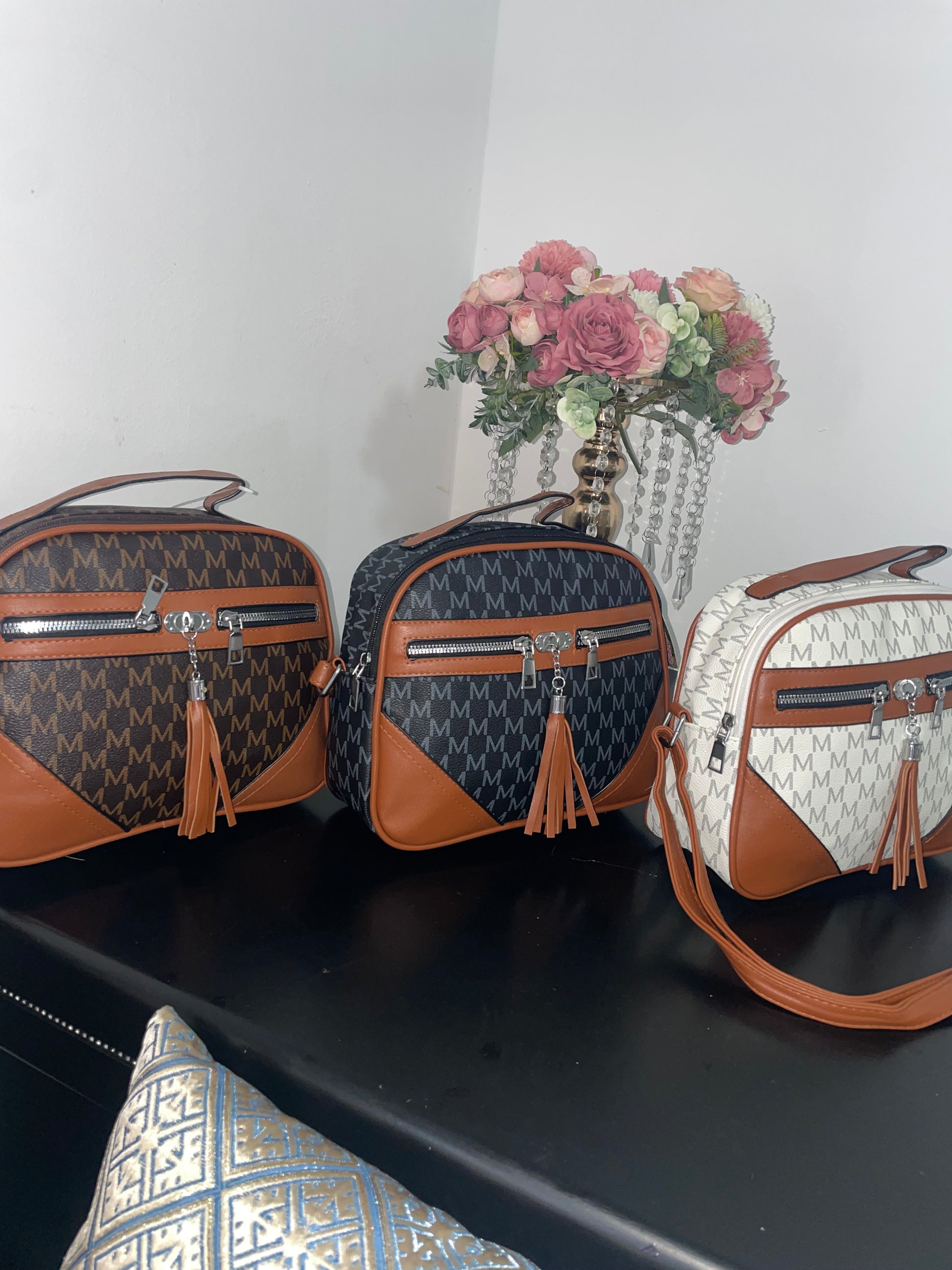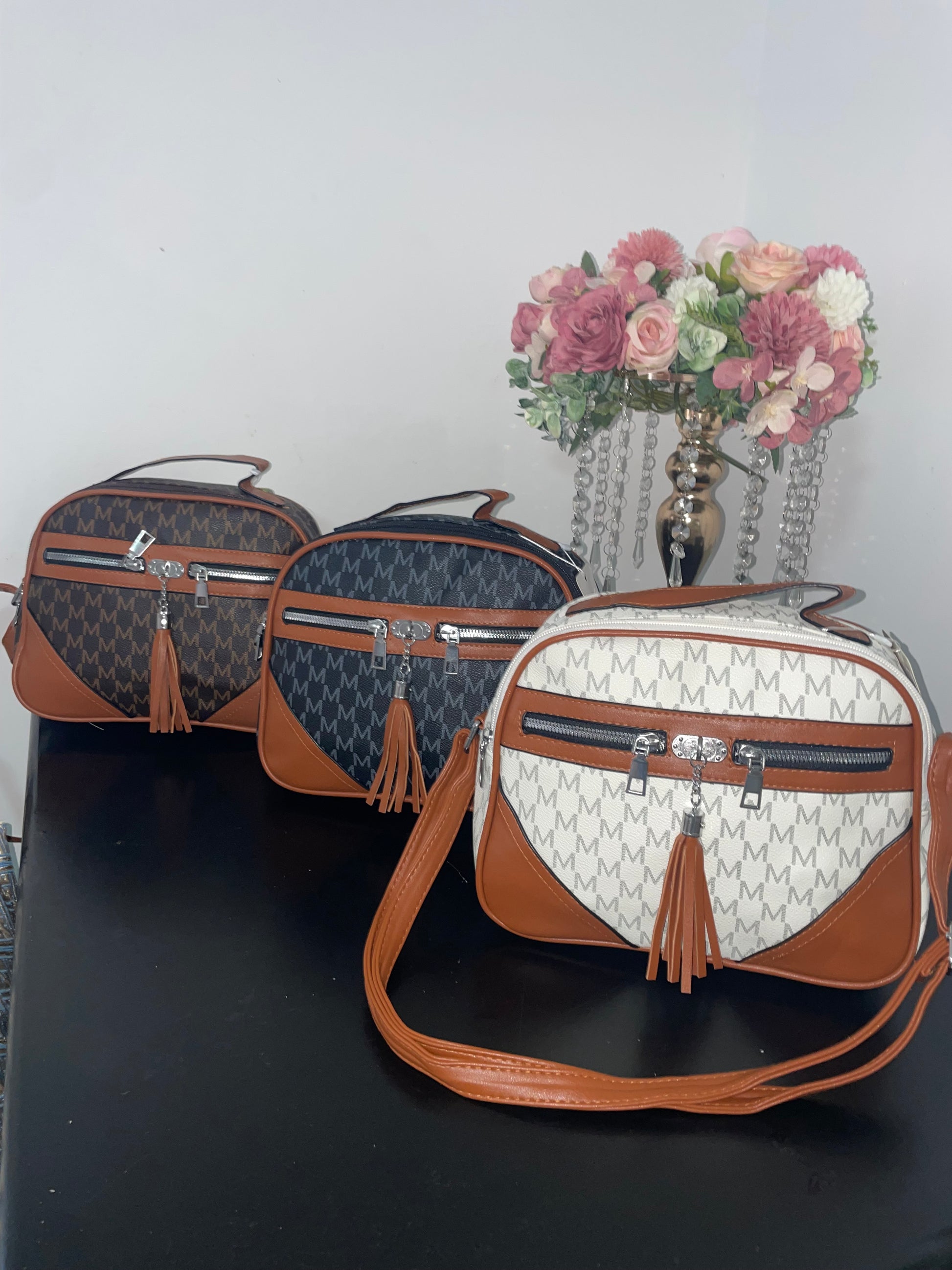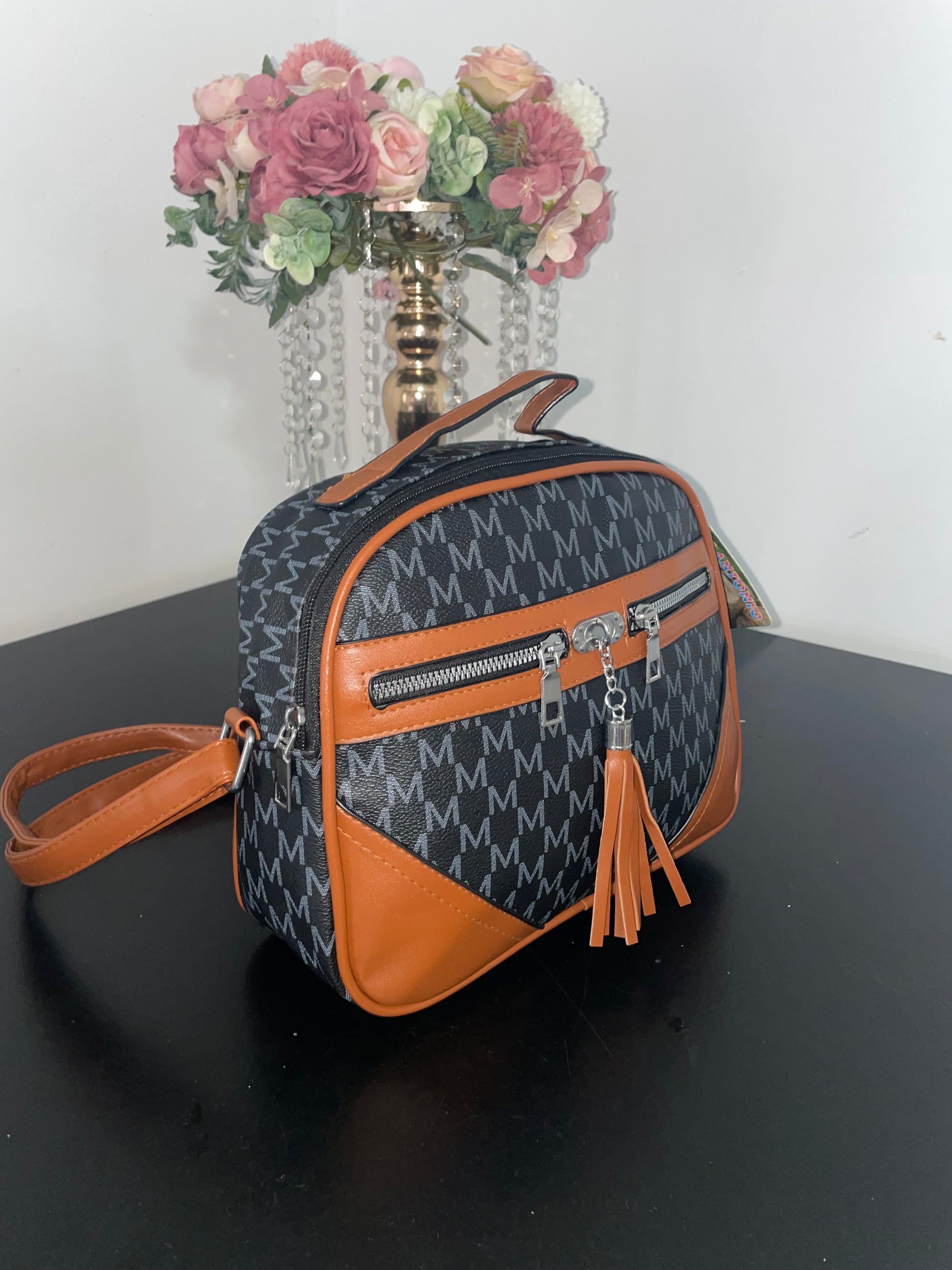 Stijlvolle tas met verstelbare schouderriem, ritsvak en decoratieve kwast.